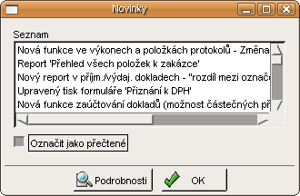 Dialog, který informuje o novinkách aktuální verze