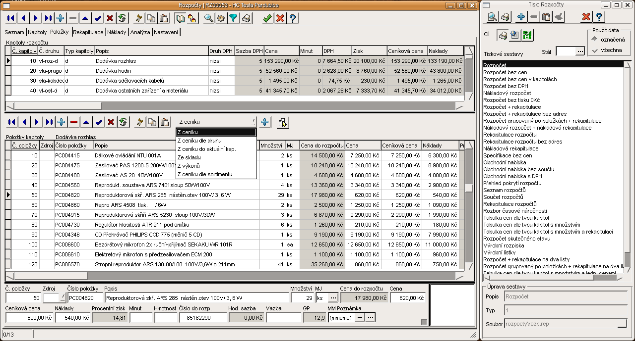 Rozpočty, nabídky a kalkulace