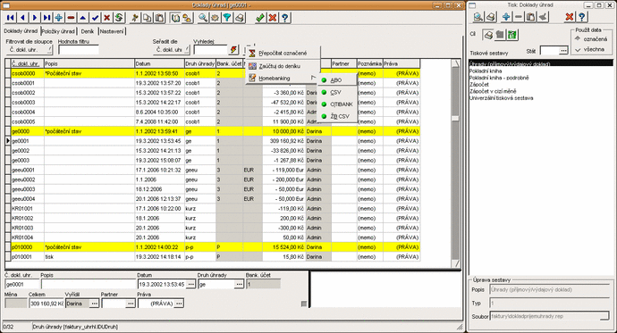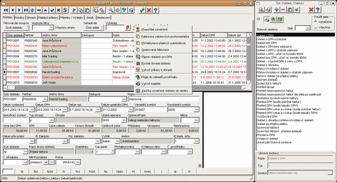 Faktury, doklady, banky, pokladny