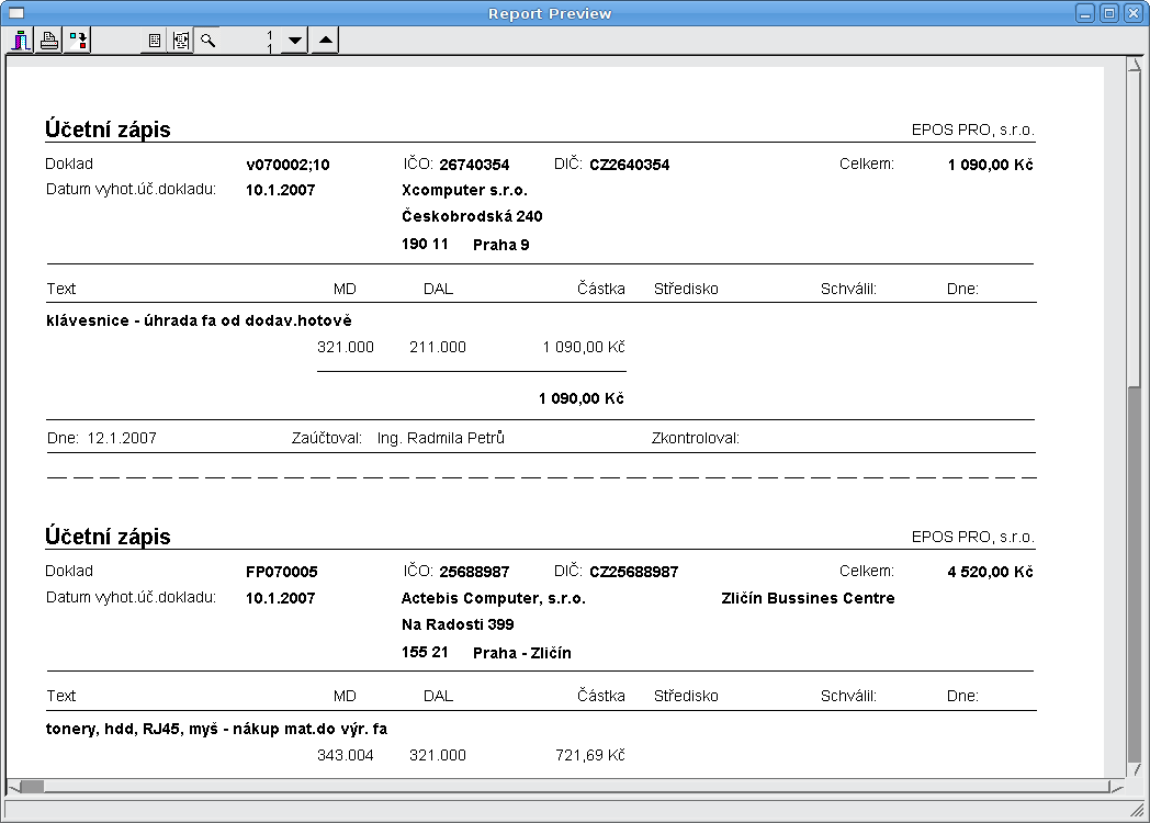 Faktury, doklady, banky, pokladny