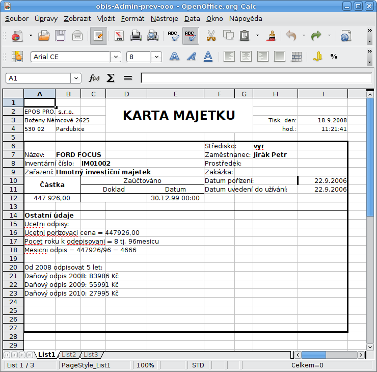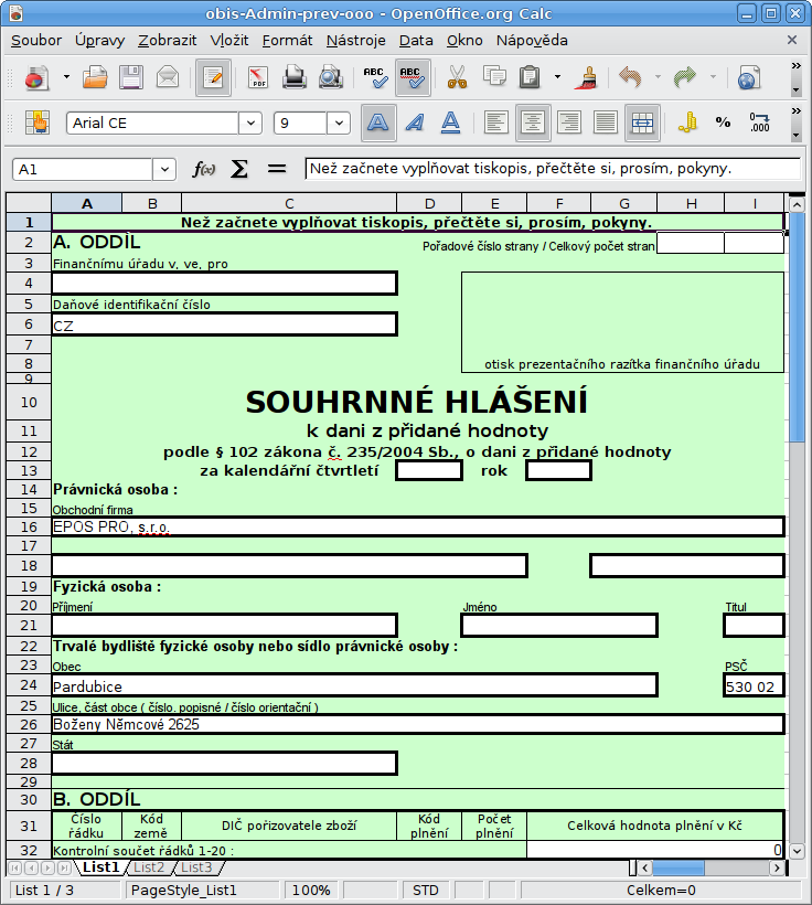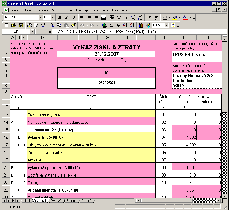 Výkaz ZS - sestava do MS Excel