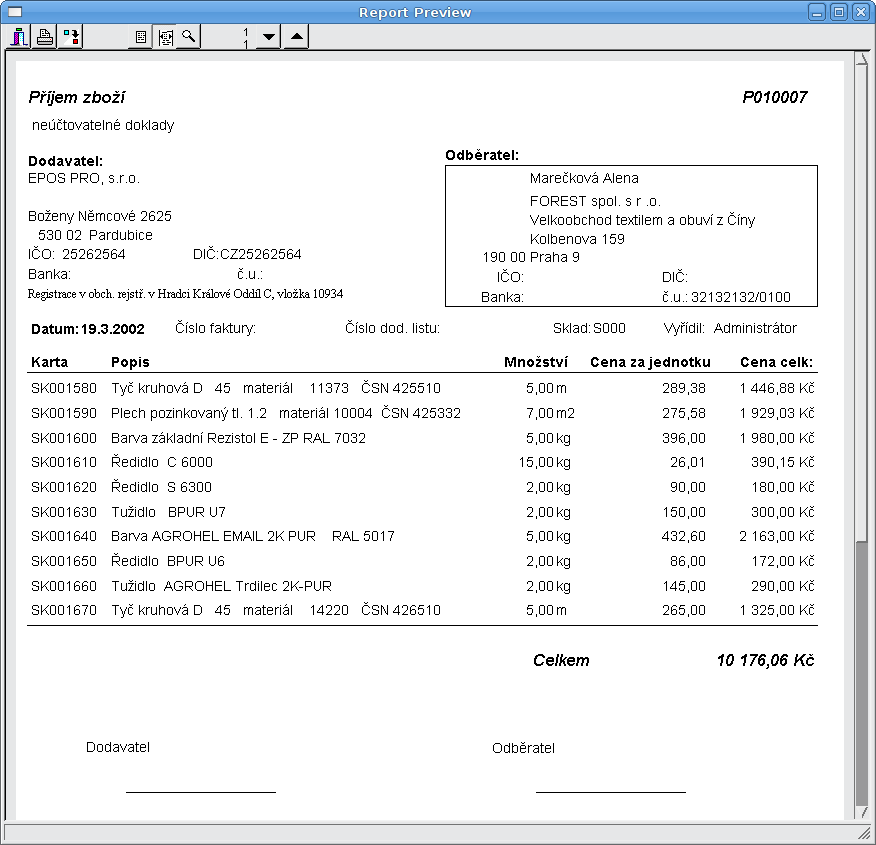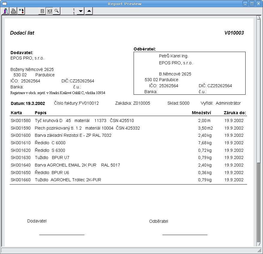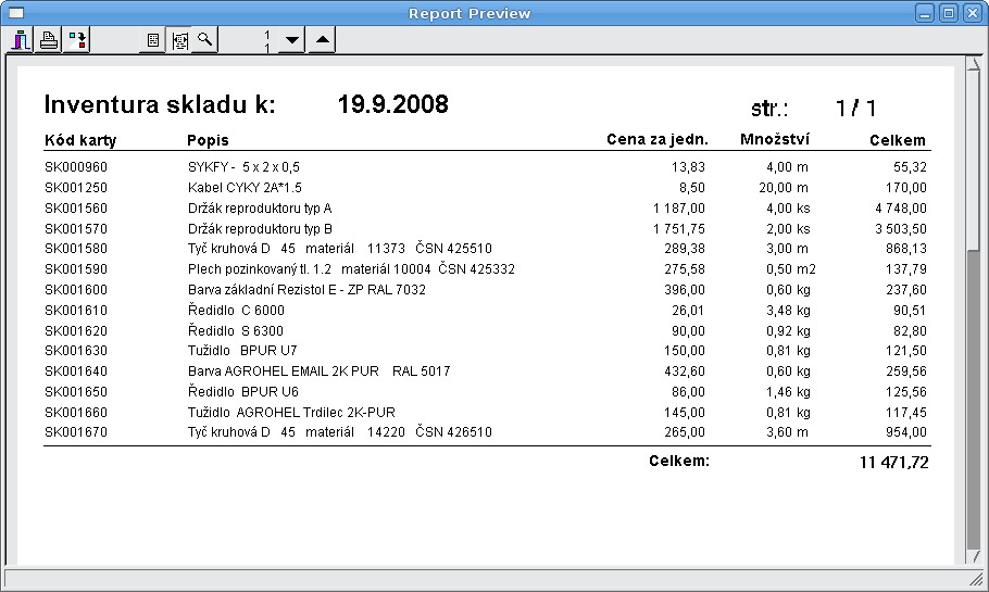 Inventura (pouze nenulová mnozství)